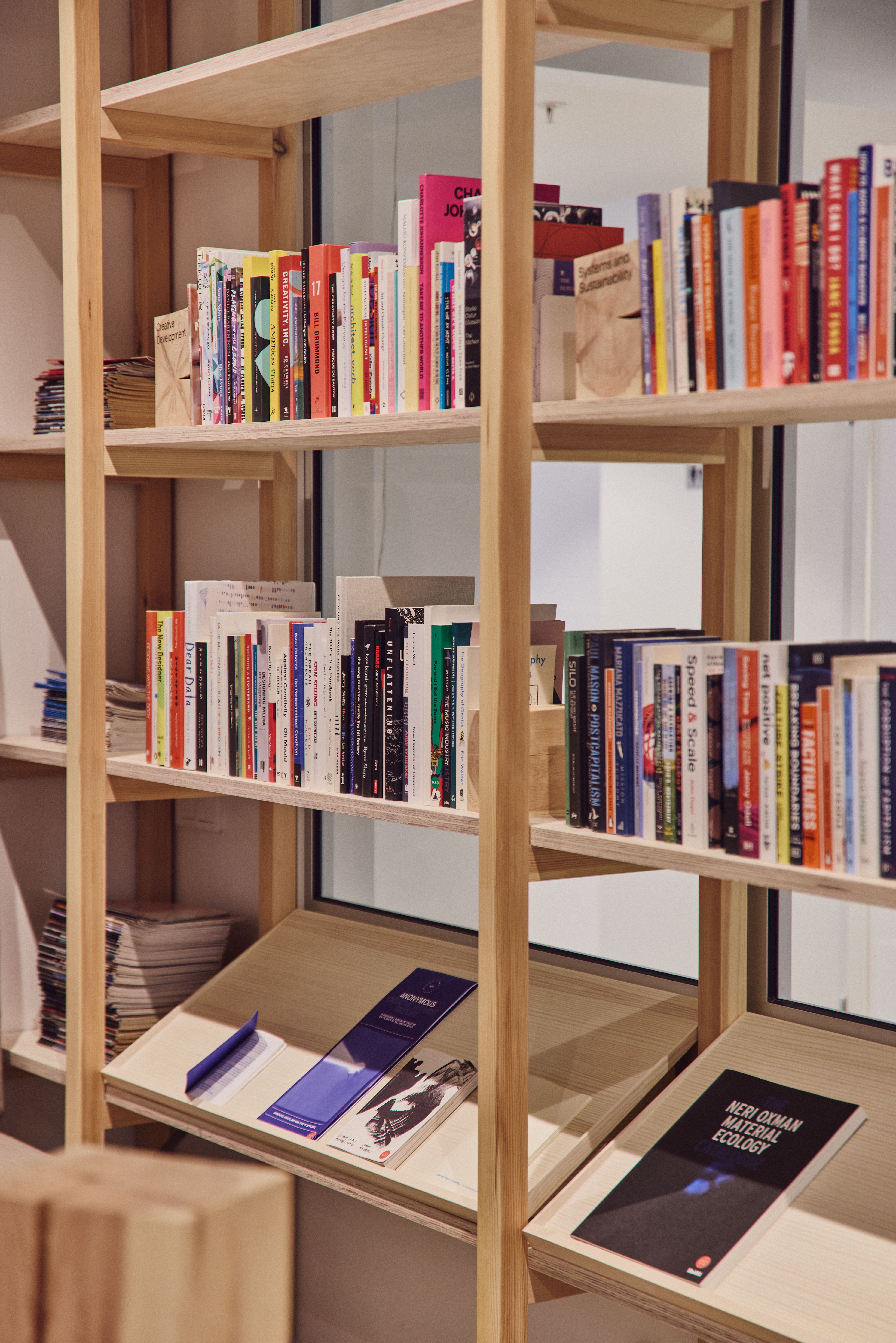 Our Futures Library is a community driven space for research, inspiration and future thinking. Located by the entrance of Media Evolution, the library is a space to explore new avenues, pause, read, contemplate and debate.